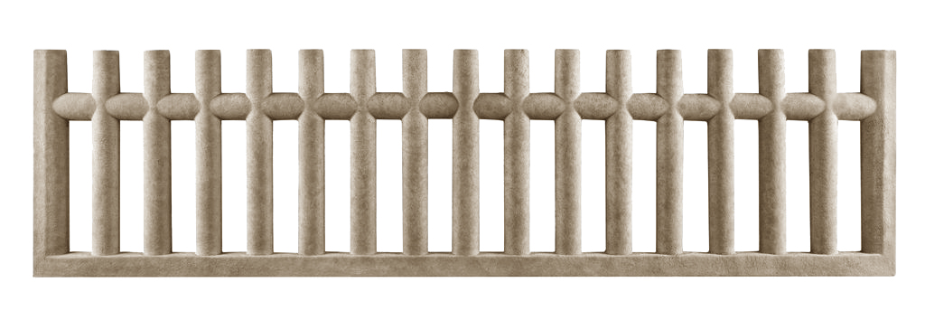 Dieser klassische Betonzaun stellt die ideale Kombination aus zeitlosem Design und Langlebigkeit dar. Es besteht aus regelmäßigen, zylindrischen Betonplatten und seine einfachen, aber eleganten Linien fügen sich problemlos in jedes Äußere ein und verleihen Ihrem Grundstück ein stilvolles Aussehen.